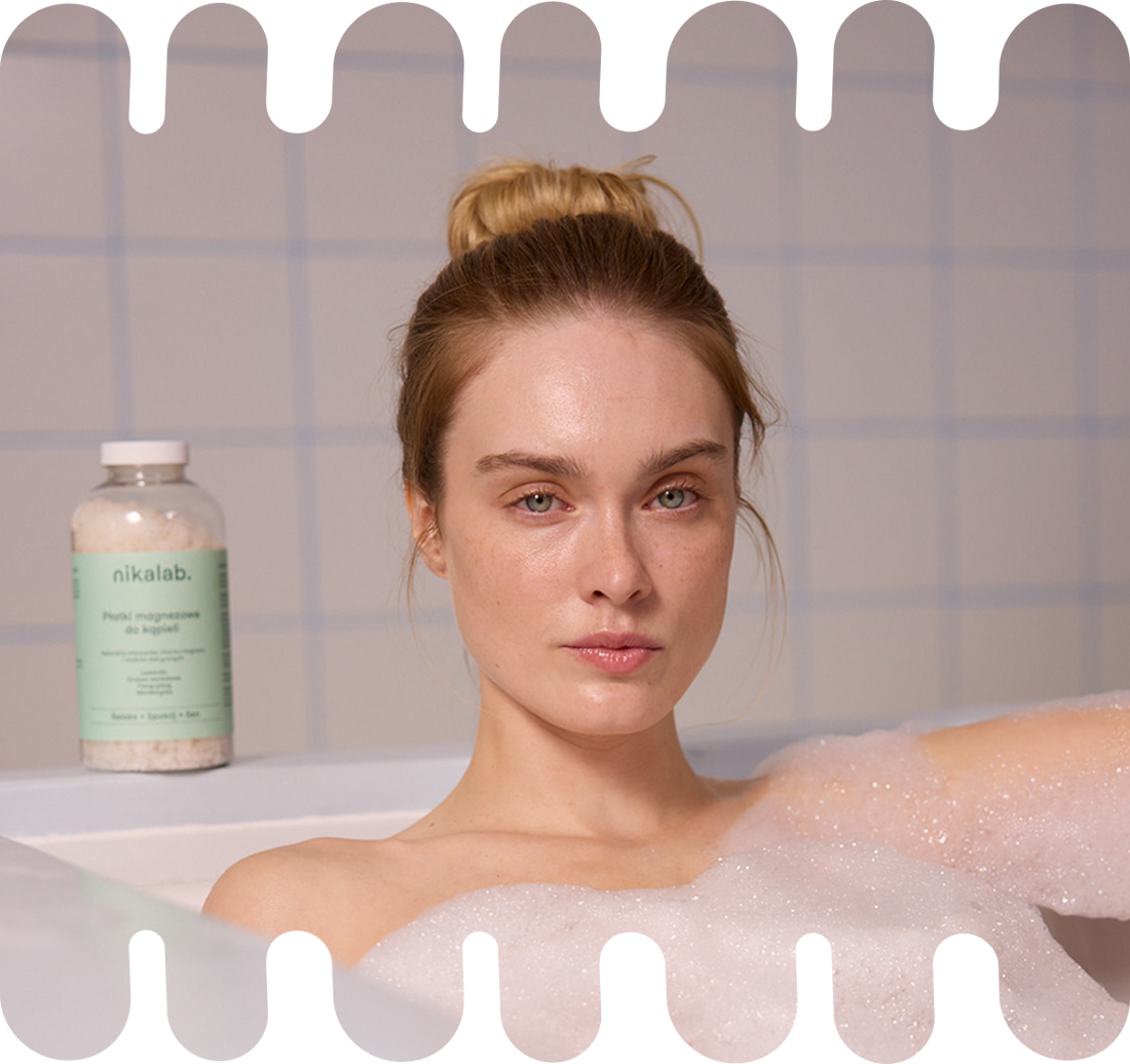 DLACZEGO? Ciepła woda podnosi temperaturę ciała, a po kąpieli następuje jej szybki spadek. To właśnie ten mechanizm – obniżenie temperatury rdzenia ciała przez oddawanie ciepła (szczególnie przez dłonie i stopy), uruchamia fizjologiczny mechanizm sprzyjający zasypianiu(1). To właśnie codzienne rytuały – takie jak dobry sen, zbilansowana dieta, mądra suplementacja i kąpiel z magnezem – wspierają regenerację ciała i pomagają umysłowi spokojnie zasnąć.