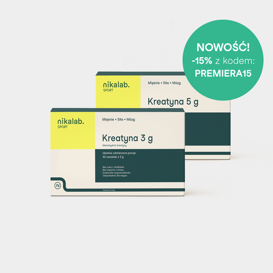Rabat obowiązuje na nowości: Kreatyna i Maślan sodu. Na pierwsze zamówienie w subskrypcji lub zamówienie jednorazowe. Promocja trwa do 15.10.2025 r.Promocje nie łączą się – przy kasie może być użyty tylko jeden kod rabatowy. Regulamin promocji organizowanych przez nikalab