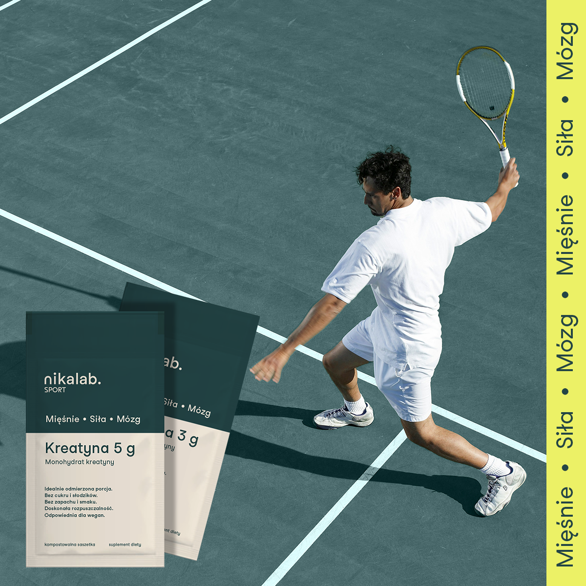 Kreatyna była jednym z pierwszych suplementów diety stosowanych przez olimpijczyków i zawodowców w sportach wymagających krótkich zrywów maksymalnej mocy. Dziś korzystają z niej sportowcy wielu dyscyplin – od sprinterów i pływaków po piłkarzy czy tenisistów – wszędzie tam, gdzie liczy się moc, szybkość i szybka regeneracja. Codzienne spożycie kreatyny zwiększa wydolność fizyczną w przypadku powtarzających się, krótkotrwałych wysiłków o dużej intensywności(1). Badania potwierdzają również, że codzienne spożycie kreatyny nasila efekt treningu oporowego w zakresie siły mięśni(2). Badania naukowe pokazują też, że kreatyna może sprzyjać wzrostowi beztłuszczowej masy ciała poprzez wspieranie syntezy białek mięśniowych i zwiększanie uwodnienia komórek(7,8) oraz, że może ona przyspieszać odbudowę zapasów energetycznych w mięśniach po wysiłku, co wspiera szybszą regenerację i ułatwia utrzymanie wysokiej jakości oraz regularności treningów(9).
